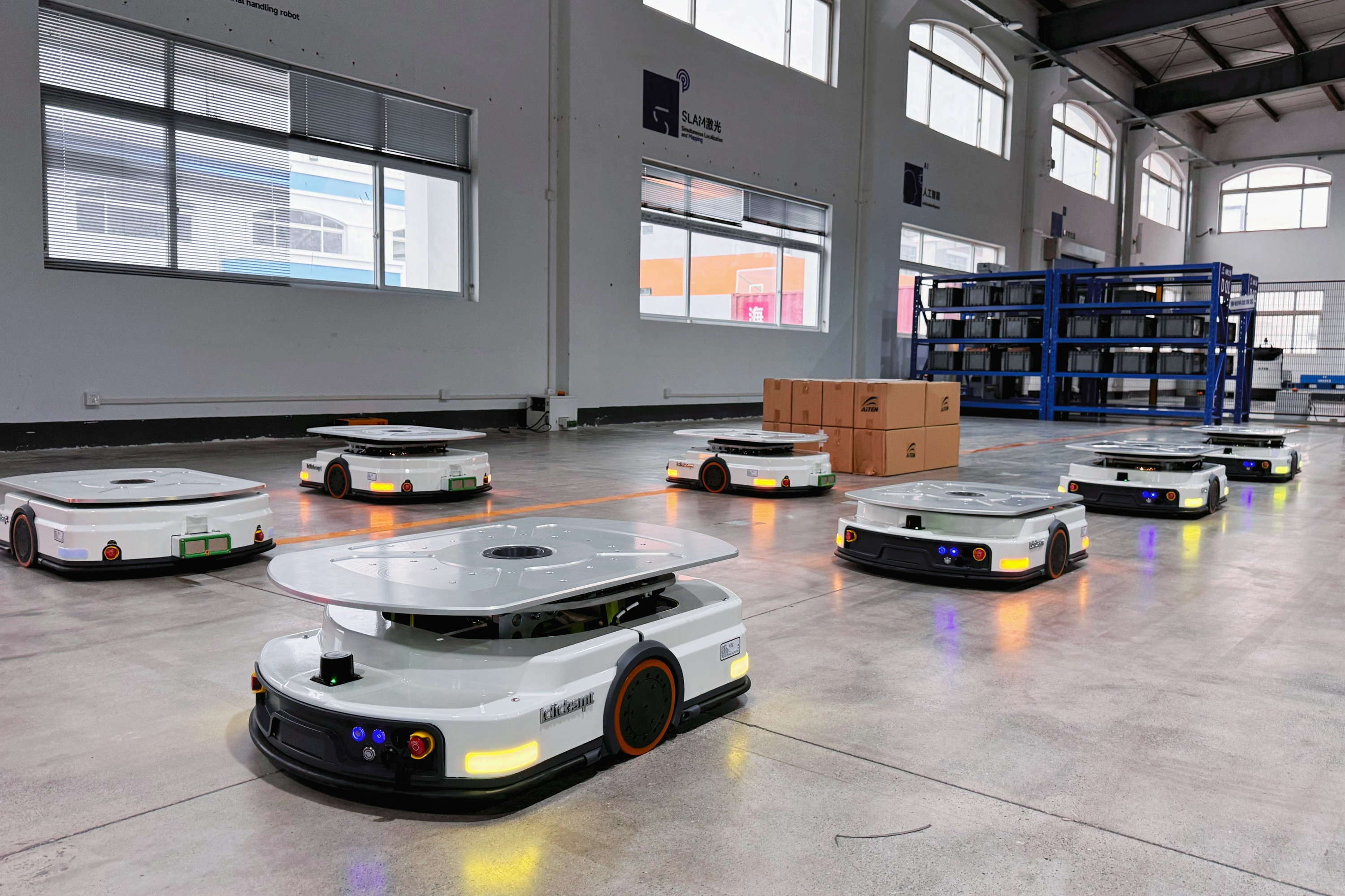 AGV:基于程序化指令运行,缺乏环境感知和自主决策能力,属于“自动化”设备